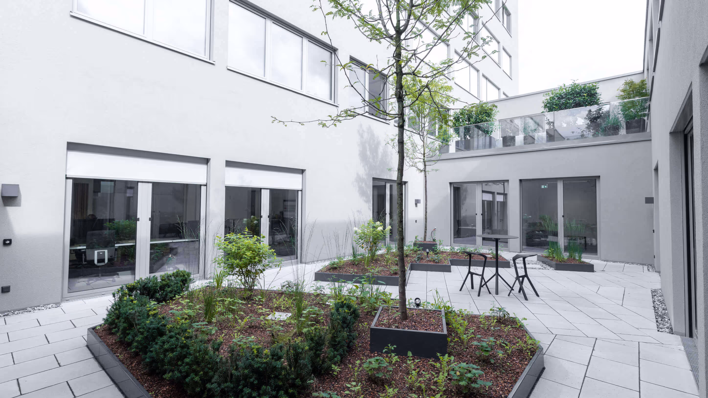 Die 15 Büros (zwischen 10 und 30 m²) sind kurz- und langfristig buchbar und bieten Platz für bis zu 4 Personen. Jeder Arbeitsbereich ist modern und hochwertig ausgestattet: Vom ergonomischen Drehstuhl bis zu praktischen Zusatzangeboten wie die Kaffeeküche und der Zugang zu den wunderschön angelegten Erholungsbereichen.