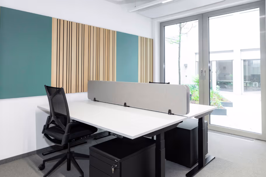 Die 15 Büros (zwischen 10 und 30 m²) sind kurz- und langfristig buchbar und bieten Platz für bis zu 4 Personen. Jeder Arbeitsbereich ist modern und hochwertig ausgestattet: Vom ergonomischen Drehstuhl bis zu praktischen Zusatzangeboten wie die Kaffeeküche und der Zugang zu den wunderschön angelegten Erholungsbereichen.
